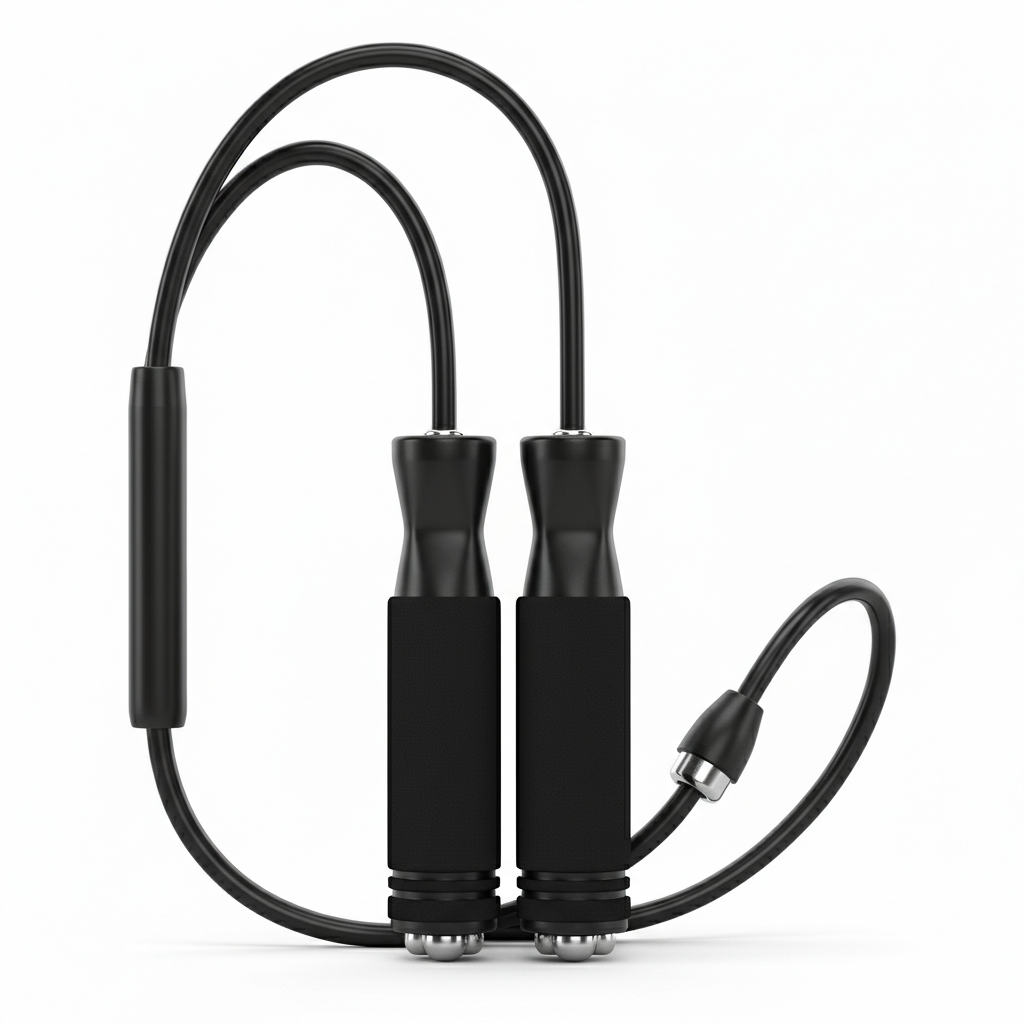 Constructed with lightweight, high-grade aluminum handles featuring a knurled texture for maximum grip. The rope is a tough, flexible steel cable coated in a protective, low-friction PVC sleeve.